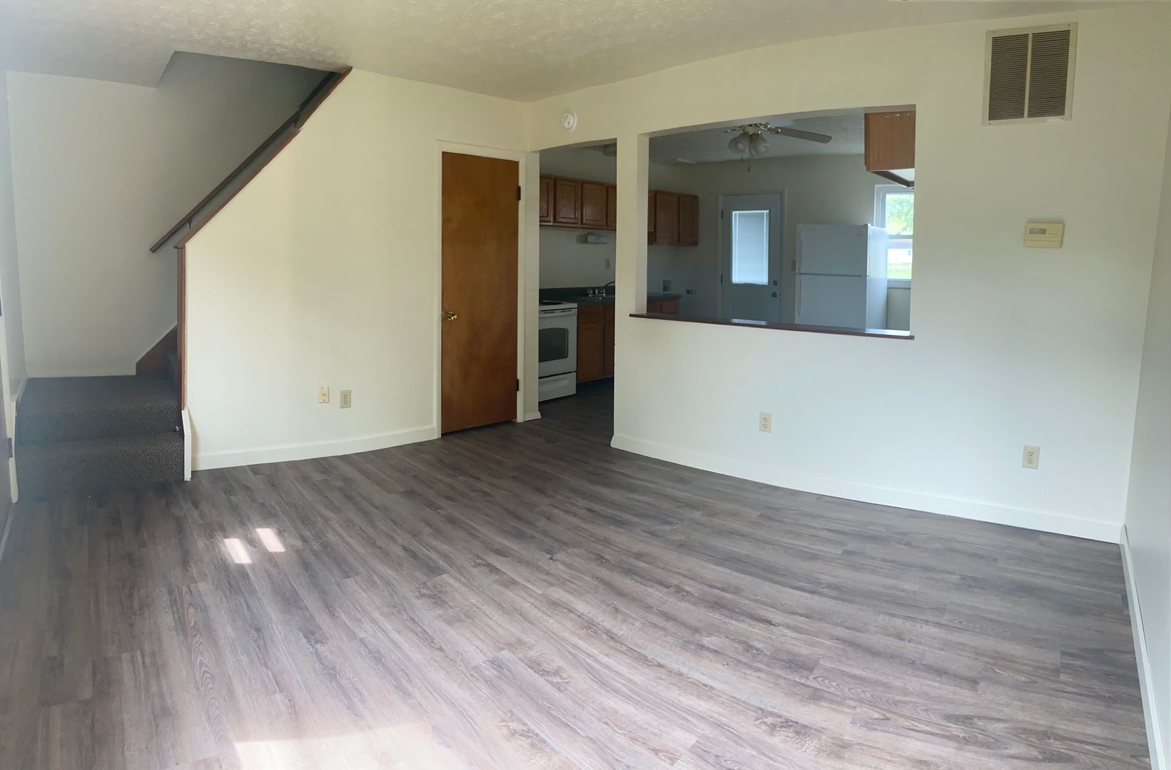 Two bedroom/1 bath town-home tucked away in New Lebanon. Newer Luxury Vinyl Laminate flooring throughout, neutral paint throughout, carpeting on stairs only, separate front and back door entrances, washer/dryer hookup in kitchen, off street parking, central AC, gas heat (paid by tenant), water and trash paid by tenant. Sorry, no pets. Sorry, this property does not accept housing vouchers.